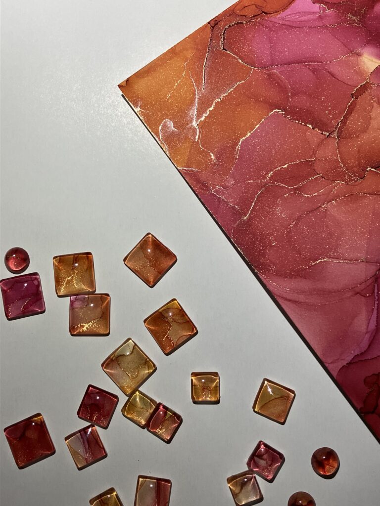 インクのグラデーションが生み出す美しさに魅了され、2022年よりアルコールインクアートの制作を始めました。